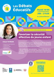 1- Mardi 19 mai 2026 à 20h : Favoriser la sécurité affective du jeune enfant