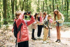 fille-regardant-dans-des-jumelles-enfants-dans-la-foret-verte-pendant-la-journee-d-ete-ensemble